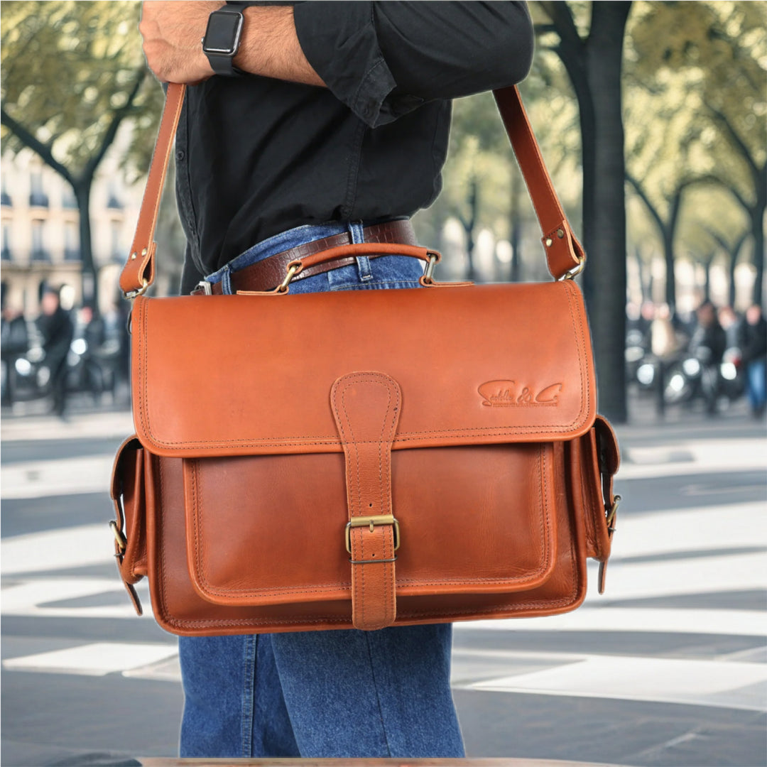 With its structured silhouette and warm cognac tone, Legacy projects confidence and professionalism. Carried by hand or worn on the shoulder, it complements classic tailoring and modern workwear with equal ease.
