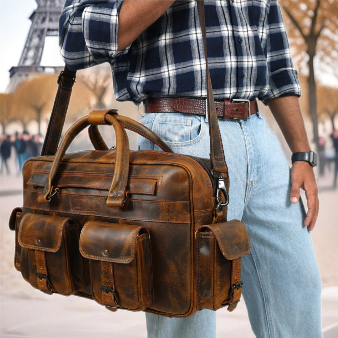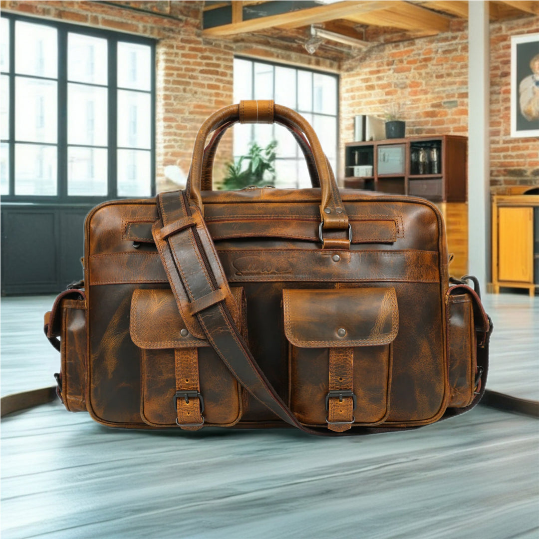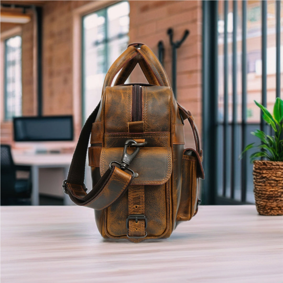 The Imperium Leather Heritage Briefcase in Rustic Chestnut blends rugged texture with timeless structure. Crafted from full-grain buffalo leather and finished with premium hardware, it’s designed for professionals who value durability, organization, and presence—without unnecessary excess.
